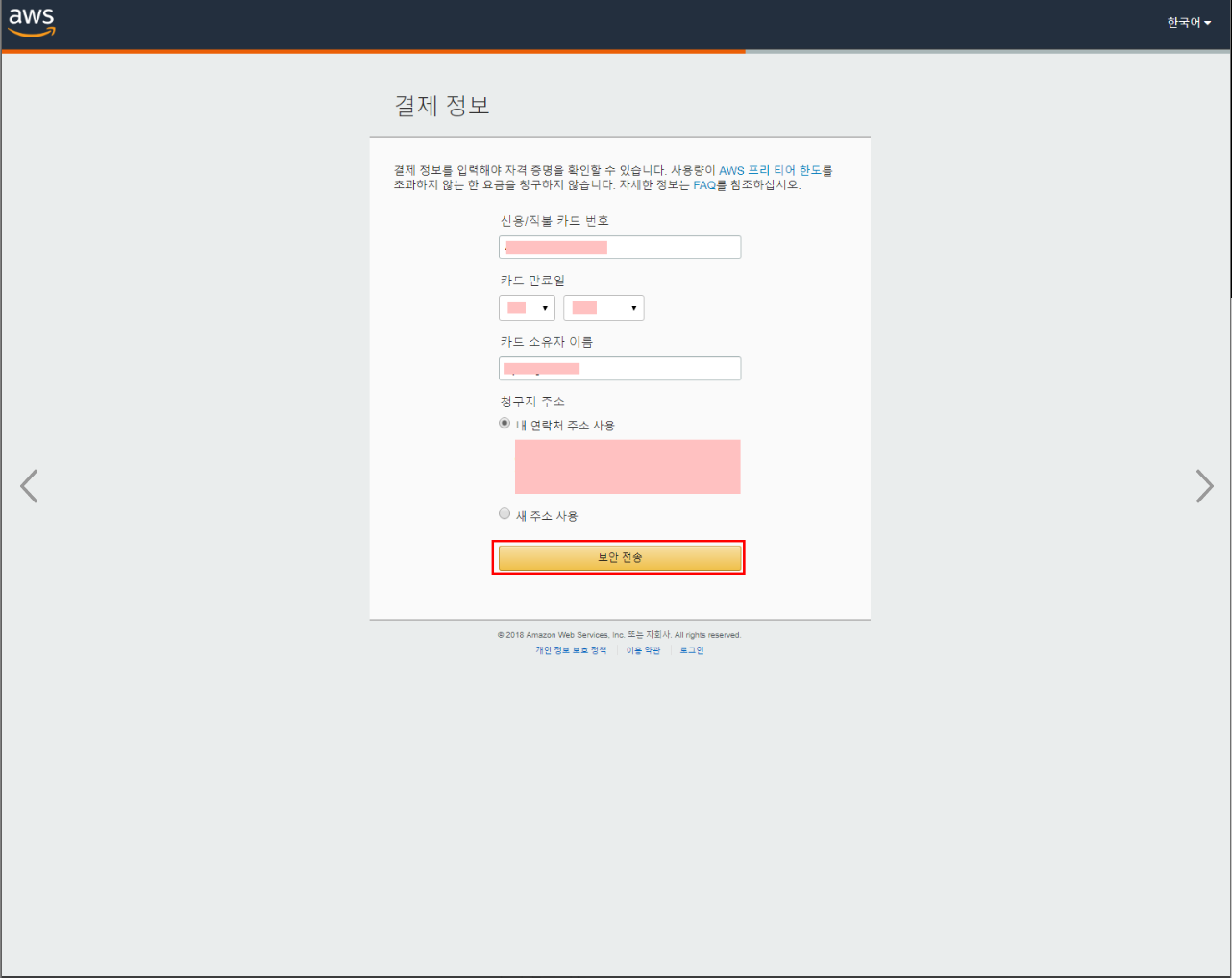 AWS 가입을 하는데 유료이진 않지만 서비스들을 사용한 만큼 지불하는 방식이기에