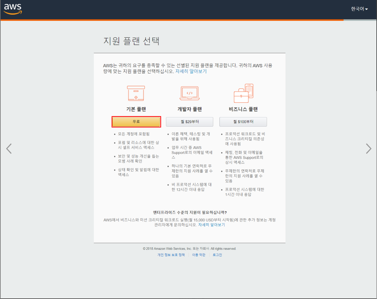 우선을 기본플랜으로 가입을 해보도록 하겠습니다.