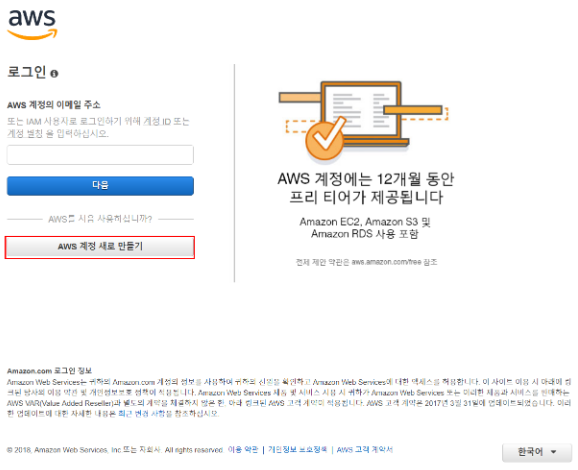 콘솔창으로 바로 들어오신분은 [AWS계정 새로만들기]를 클릭합니다