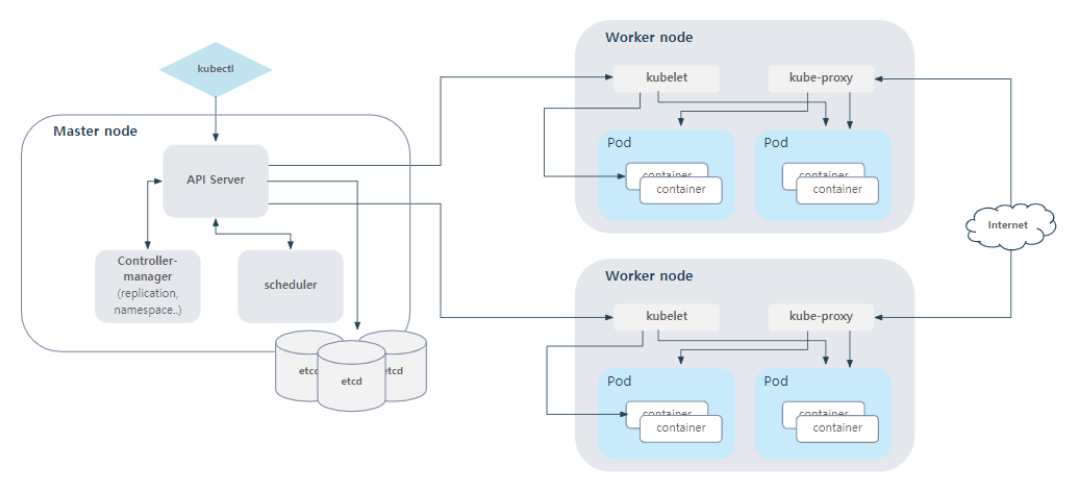Kubenetes에는 한개의 마스터노드와 여러개의 워커노드가 통신을 합니다.